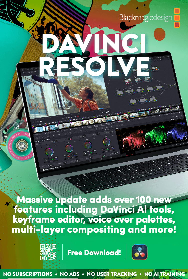 DaVinci Resolve Studioは、編集、カラーコレクション、VFX、モーショングラフィックス、オーディオポストプロダクションを一つに統合した、世界唯一のオールインワンソリューションです。ハリウッドの大作映画やテレビCM、NetflixやAmazon Prime Videoのドラマシリーズなど、数多くの作品で採用されています。
