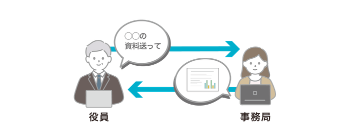 スマートセッションの強力な検索エンジンを利用して株主からの質問も想定問答集から高速に検索、検索後は必要な資料を役員に瞬時に共有でき、役員は共有された資料からスムーズな回答を行うことができます。