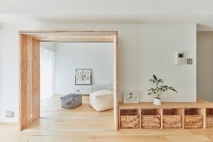 既存の壁に挿入することで、部屋をつなぐことで一室空間をつくることもでき、また個室として仕切ることも可能です。デスクワークや収納など木囲いの中も有効に活用することができます。