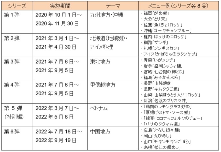 これまでの「うまいもの紀行」同様、メニューは完全調理品(※)としてパッケージ化されて各施設に納品されるため、コロナ禍においてもオペレーションの負担軽減や省人化対応が可能です。また工場で一括調理されることで、各調理現場での廃棄物のほか、仕込みや調理・洗浄時における水の削減効果も期待できます。比較的変化が少ない入院・入所生活においても非日常感とSDGsの視点を両立させた意義深い取り組みと言えます。