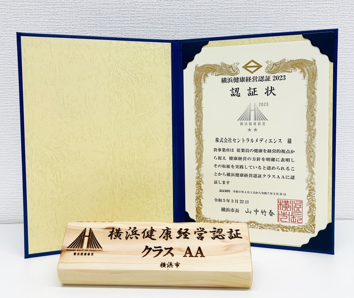 ヘルスケアをサポートする事業を展開する株式会社Central Medience(本社:神奈川県横浜市、代表取締役:中川隆太郎、以下「当社」)は、「横浜健康経営認証2023」において、クラス AAの認証を2021年に引き続き継続して取得いたしましたのでお知らせいたします。