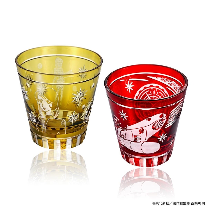 本格SFアニメの名作『宇宙戦艦ヤマト』のテレビ放送50周年を記念して、日本伝統のガラス工芸「江戸切子」のグラスが誕生しました。大宇宙を航行するヤマトをイメージした赤色のグラスと、永遠のヒロイン森 雪の肖像を映し出す琥珀色のグラスの2種。いずれも「江戸切子協同組合」加盟工房の職人が、色被せガラスに切子カットとサンドブラストの技で一点一点手づくりしたロックグラスです。