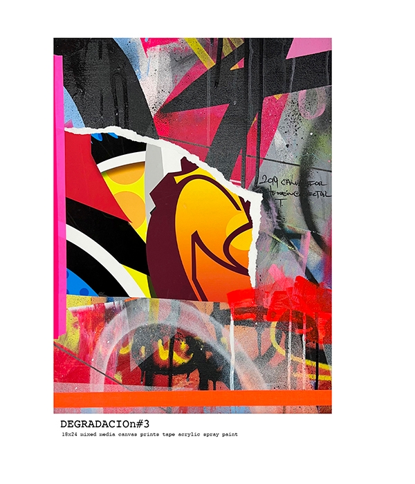 古典的なニューヨーク・グラフィティ・アートから、グラフィック・レタリング・スタイルと3D要素や抽象芸術のテクニックを組み合わせたものへと進化してきたSen2の作品には、すべてグラフィティ要素が含まれており、彼の芸術的ルーツと、洗練され常に進化し続けるスタイルを反映しています。さらに、彼の作品は、色彩と動きの間に楽しい対話を生み出しています。それはSen2はグラフィティとファインアートの境界線を曖昧にしています。特にバウハウス運動とジョセフ・アルバースの色彩理論に大きな影響を受け、グラフィティからメカニカルなスタイルへの進化に焦点を当てた「メカニコ」では、シャープな線の使い方が大胆な色使いと微妙なブレンドでぼかされ、さまざまなテクスチャーの中で激しく衝突しているのです。
