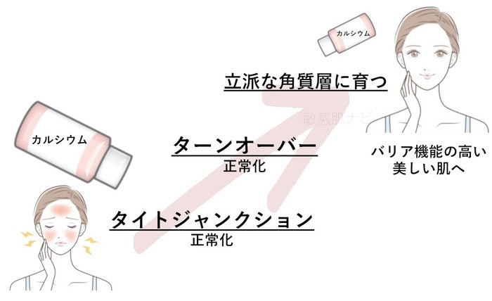 カルシウムを肌に補うと、タイトジャンクションの形成が促進され、バリア機能が強化されます。