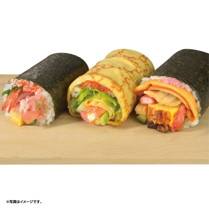 「招福 海鮮節分太巻」「七福 洋風節分太巻」「幸福 和風具だくさん節分太巻」が入った、海鮮・洋風・和風の食べ比べができるハーフサイズのセット。