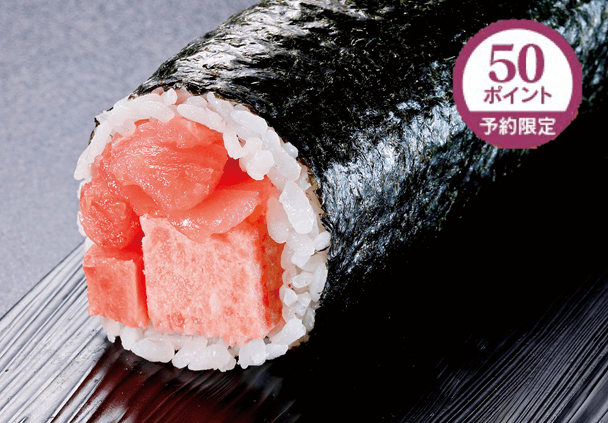 国産の生本鮪トロ・赤身の入った、まぐろ好きにはたまらない太巻。