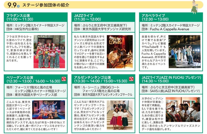第9回キテキテ府中マルシェ、ステージパフォーマンス等一覧
