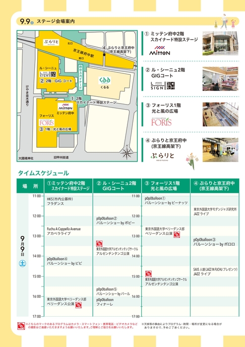 9月9 日(土):府中スカイナード南口(ペデストリアンデッキ)及び周辺商業施設内イベントスペース等