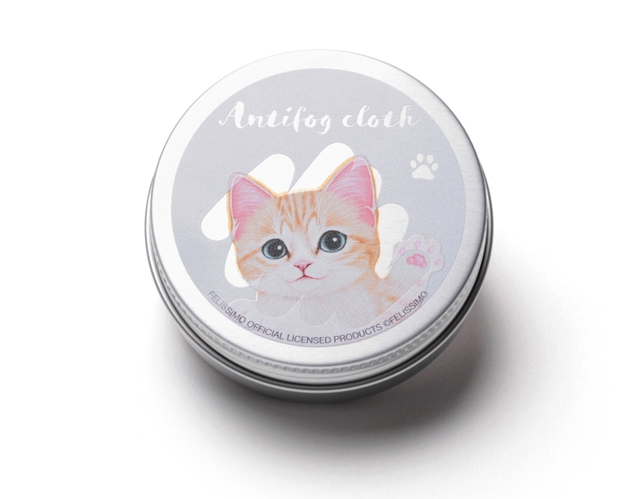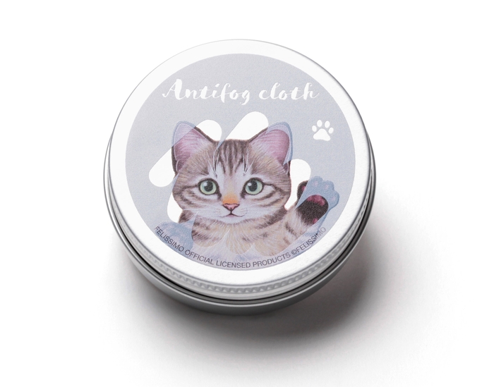 メガネのレンズを拭くだけでくもり止め効果が発揮されるドライクロスです。スプレータイプとは違い、短時間で簡単にくもりを抑えることができます。クロスの端にはいたずらに猫の足跡がついています。チャシロ、ハチワレ、キジトラ3種の子猫の缶ケースが付属しており、クロスの乾燥防止用としてご使用いただけます。