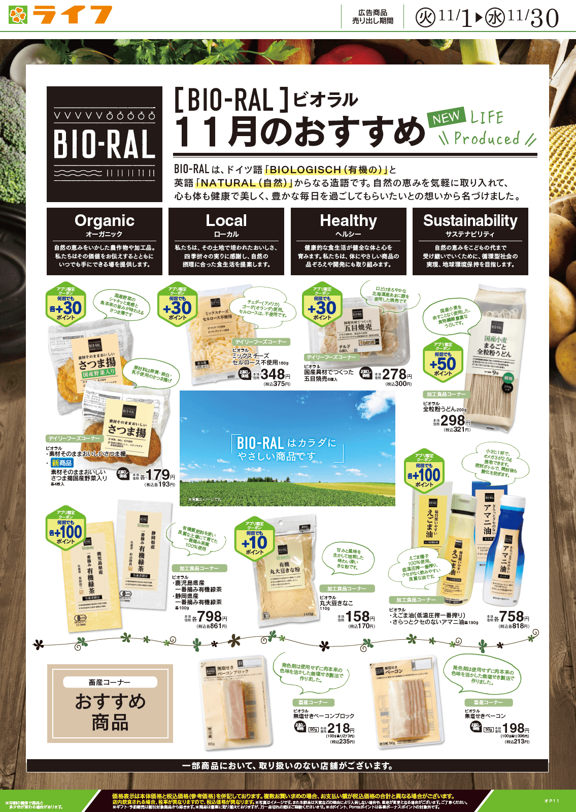 ※「BIO-RAL10月のおすすめ」チラシ掲載商品は近畿圏一部店舗でも通常売価で販売しております。