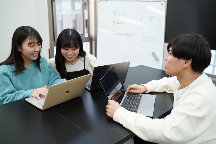 ITの力に心惹かれたのをきっかけに、オリジナルのゲームで社会課題解決に挑んだ弘田さん、筆谷さん、弥永さん。Gmashの活動は、一人ひとりの未来につながる大きなプラスを生みました。「ロスロス」の進化は今も続いています。完成したアプリケーションが世に出されるのが楽しみです。プレイした人たちに、フードロス削減へのメッセージを発信するとともに、未知の世界へ飛び込むことの大切さも伝えてくれると思います。