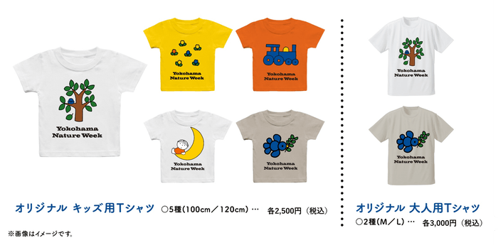 価格:子ども用Tシャツ(5種):各2,500円/大人用Tシャツ(2種):各3,000円(税込み)