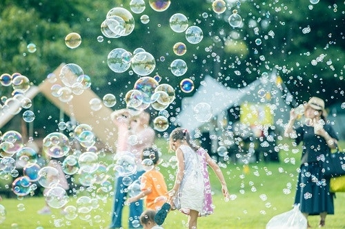 心地よい音楽とフードで、昼間とは違った空間を楽しめます。シャボン玉パフォーマンスも!