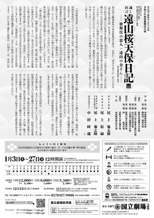 「初代国立劇場さよなら公演」令和5年初春歌舞伎公演『通し狂言 遠山桜天保日記-歌舞伎の恩人・遠山の金さん-』上演決定 カンフェティでチケット発売