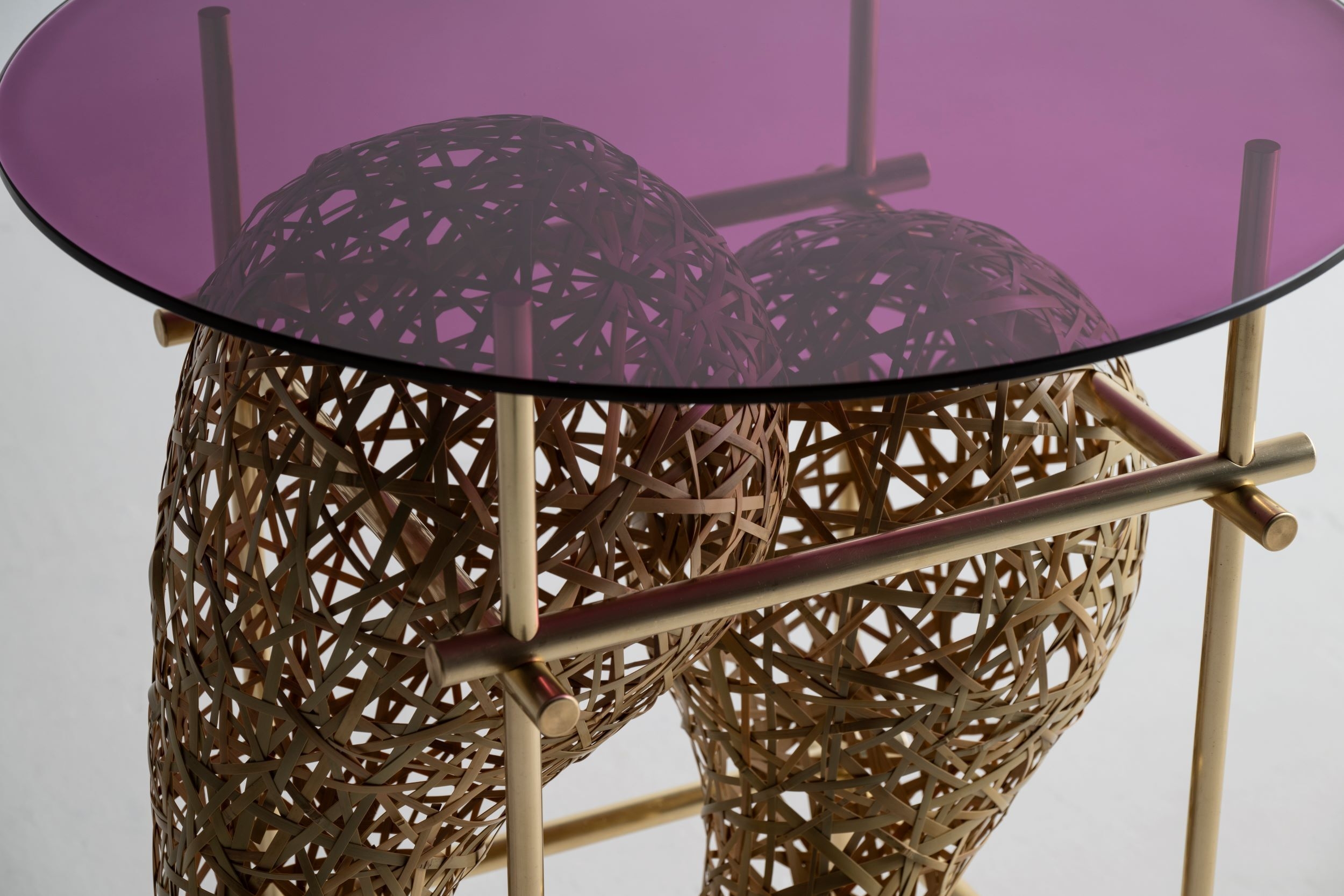 本展では、金沢クラフトビジネス創造機構で工芸ディレクターを務める原嶋亮輔が、金沢を拠点に活動する5名の作家とコラボレーション。それぞれの作品を、ガラスと真鍮を用い「しつらえとしての家具」として再構成します。