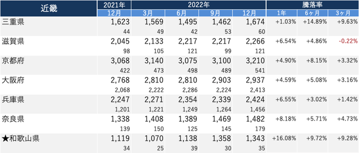 【近畿】 価格:「京都府」 3,210万円/騰落率:「奈良県」 +8.18%