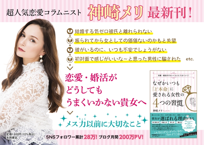 SNSフォロワー累計28万、ブログ月間200万PVの人気恋愛コラムニスト神崎メリさん最新刊。