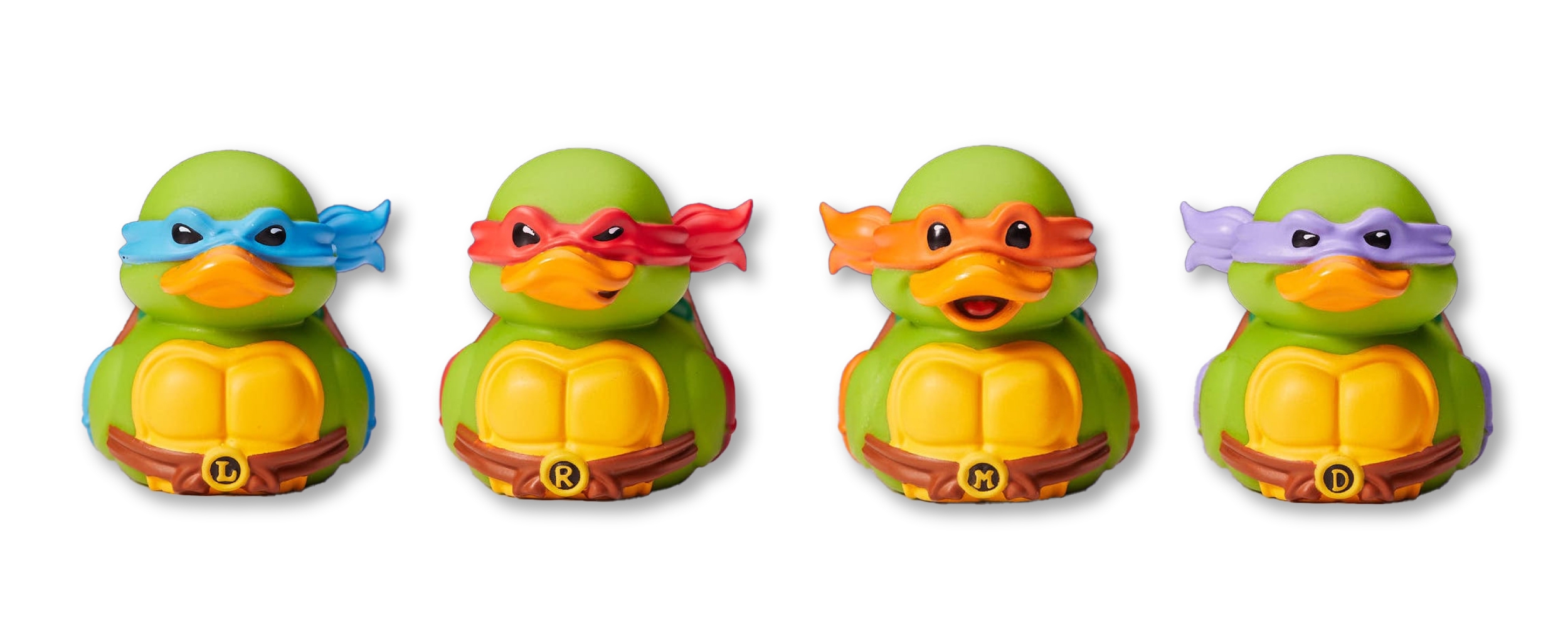 戦闘が得意なラファエロがアヒルになっても、トレードマークの赤いバンダナとキャラクターに合った表情をしています。
