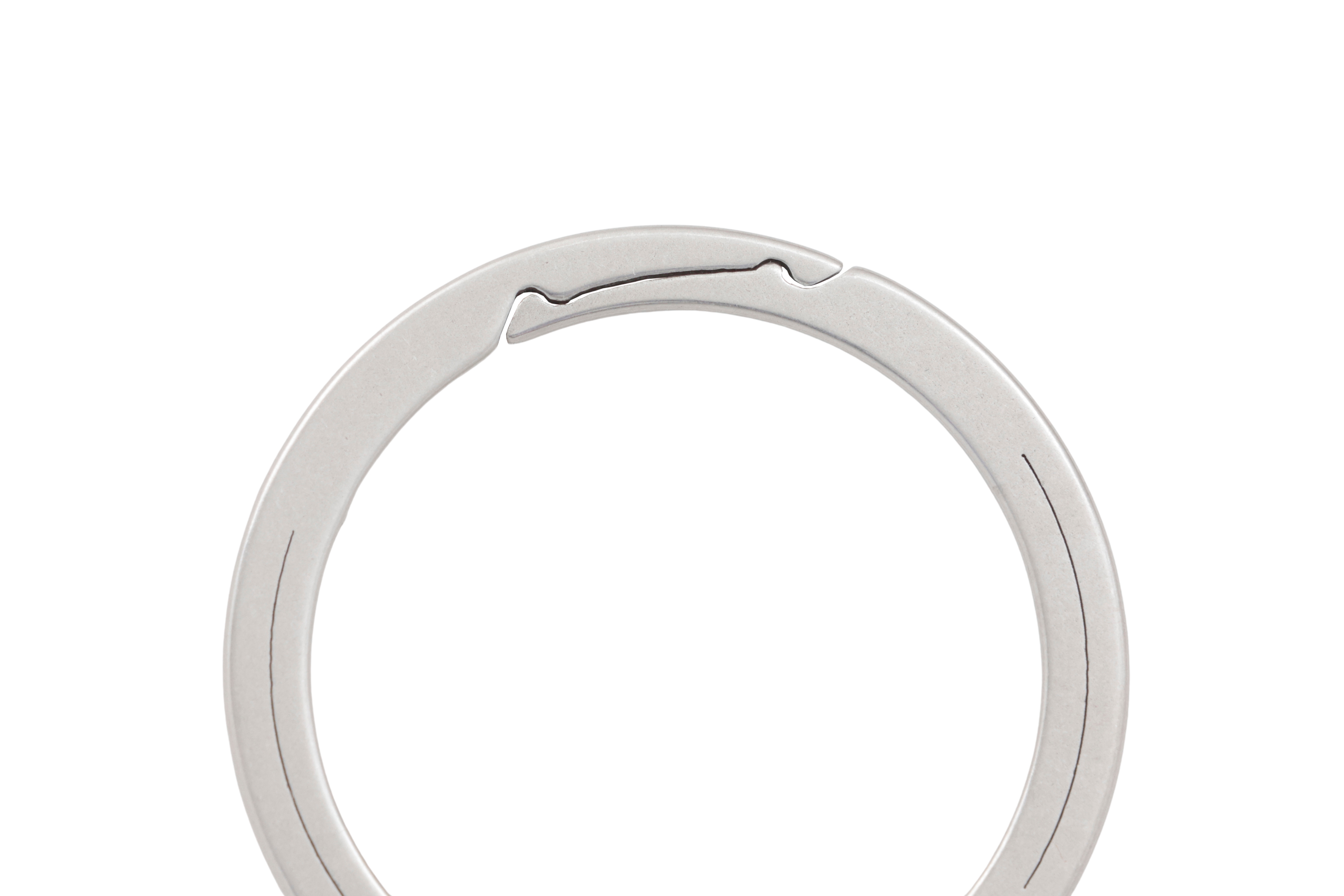 この独自設計は5カ月間のテストで一度も脱落した事がありません。日々の持ち運びに信頼を添える頼もしいキーリングです。