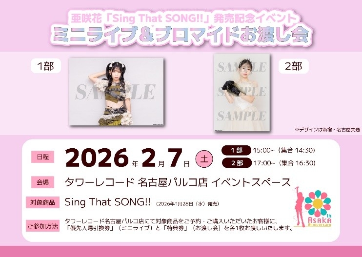 亜咲花初のカバーアルバム『Sing That SONG!!』の発売を記念してインターネットサイン会を開催します。