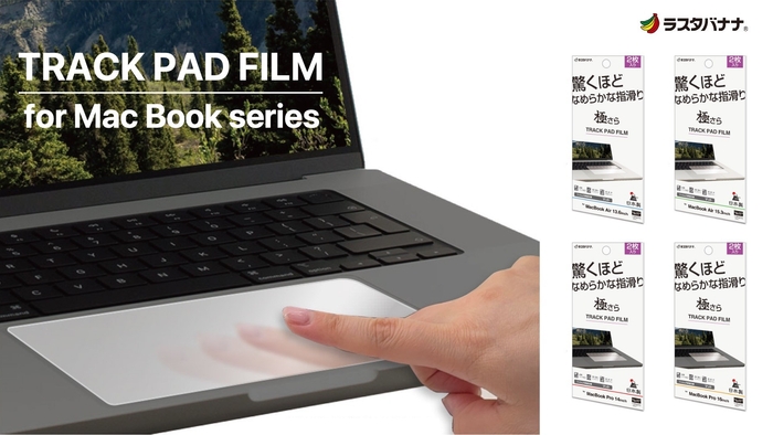 スマートフォン アクセサリーブランド「ラスタバナナ」は、通販サイト「ラスタバナナダイレクト」にて、各種MacBookシリーズに対応した、驚くほどならかな指滑りのトラックパッド保護フィルムを、9月25日より発売を開始しました。