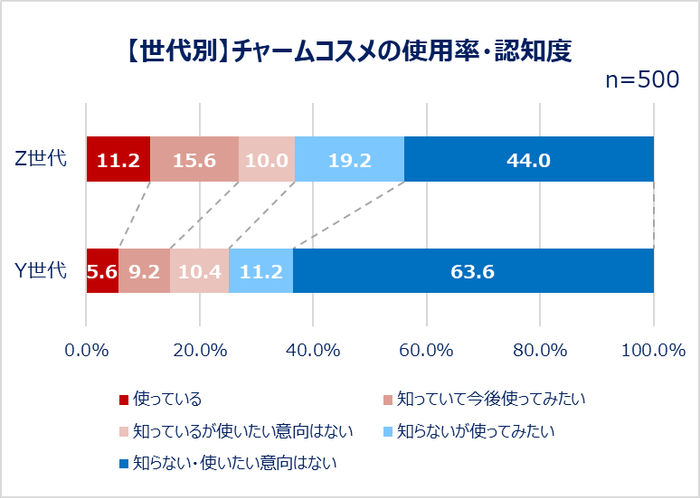 コスメはY世代よりZ世代が高め。Y世代はコスメよりスキンケアを重視したい傾向に