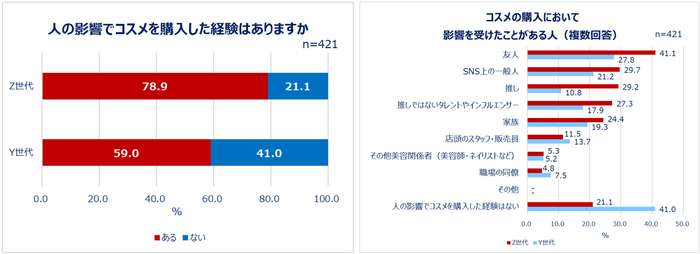 Y世代よりZ世代の方が「友人」「推し」など人の影響でコスメを買う傾向に