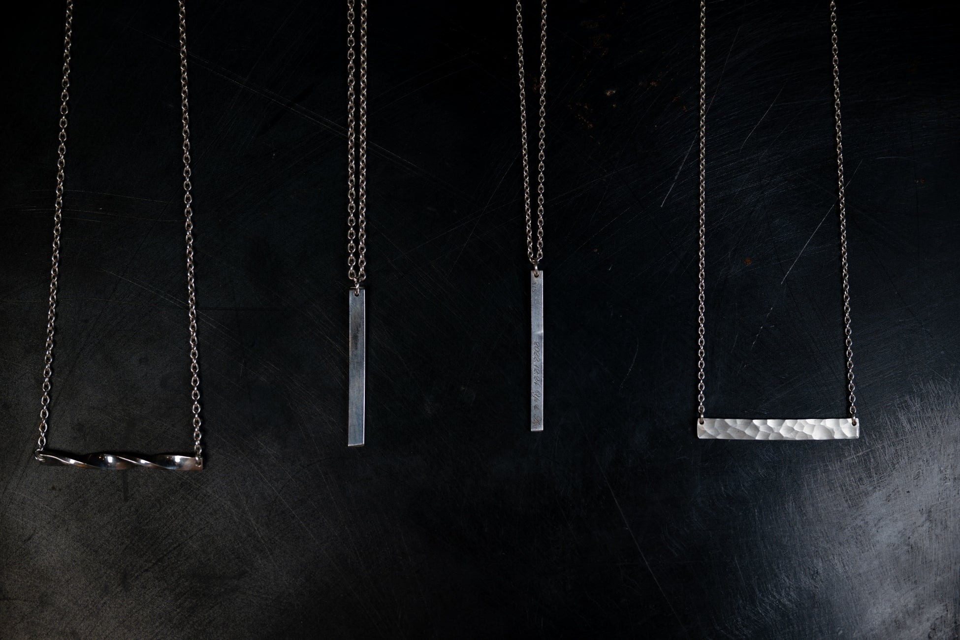 シルバー素材の表面をリューターで磨く、ハンマーで叩くなど加工を施し、自分だけのオリジナルネックレスを制作できます。シンプルなフォルムのバータイプネックレスは、装いのアクセントとして首元をキラッと華やかに見せてくれます。もちろんペアで手作りネックレスを制作することも可能です。