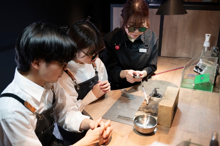 熟練の職人が一組につき一人付き、徹底的にフォローしてくれるので、初めてでも安心して指輪作りを楽しめます