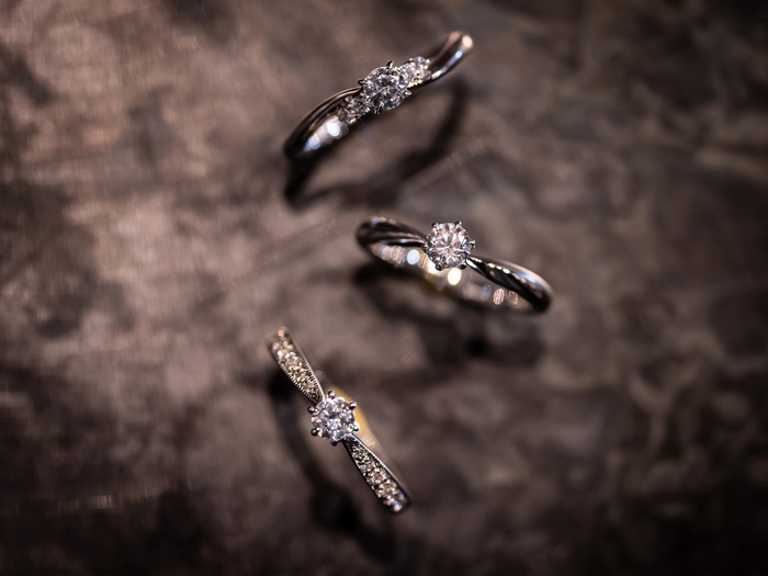 シンプルなデザインから、ダイヤモンドやカラーストーンを施したもの、リング形状を変形させたものまで、職人がいるからこそ細かなアレンジが可能です