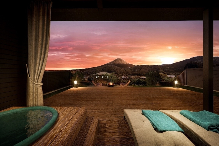 1日5組限定の「天空の温泉ヴィラ紬 河口湖」が8/1オープン! 全棟サウナ・天然温泉露天風呂付ヴィラ プライベート空間でワンランク上の非日常体験を提供