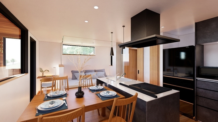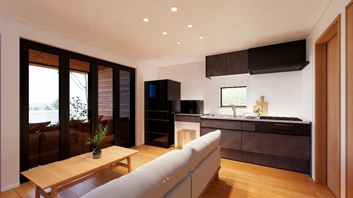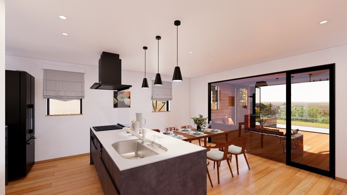 内と外との境界が曖昧で開放的な“グランピングタイプ”。アウターリビングでゆったり過ごしたり、青空の下広いお庭スペースを楽しんだりできるのはこのタイプだけ。