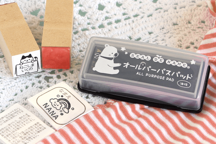 通園・通学がはじまると、毎日つかうマスクへの名前つけが必要になります。不織布マスクにも押すことができるので、表裏の間違い防止や上下の見分けにも便利です。