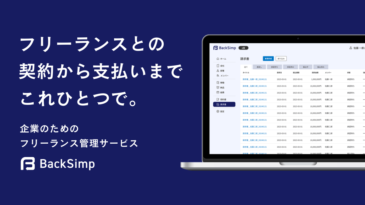 BackSimpは、フリーランスとの契約から支払いまでの業務を低コストで、