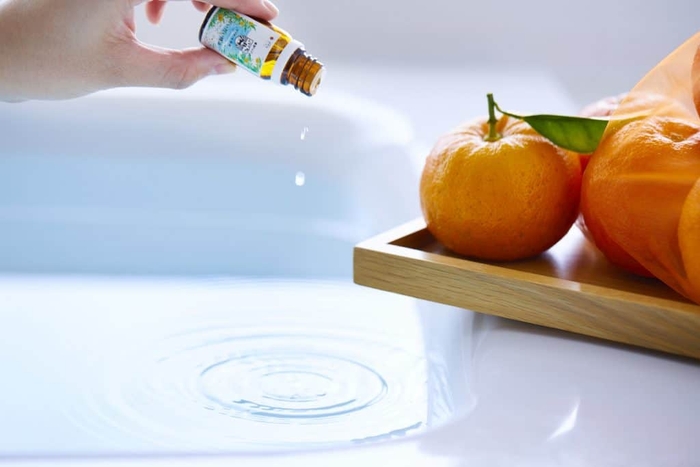 精油と果実を客室のお風呂に入れ、だいだい湯として楽しめます。香りの良さが引き立つよう、抽出方法にこだわった精油を使用します。だいだいの爽やかな香りによって、心身ともにリフレッシュできるバスタイムです。また、アロマミストスプレーを衣類やマスクに噴きかけて、滞在を通してだいだいの香りに包まれながら過ごすことができます。
