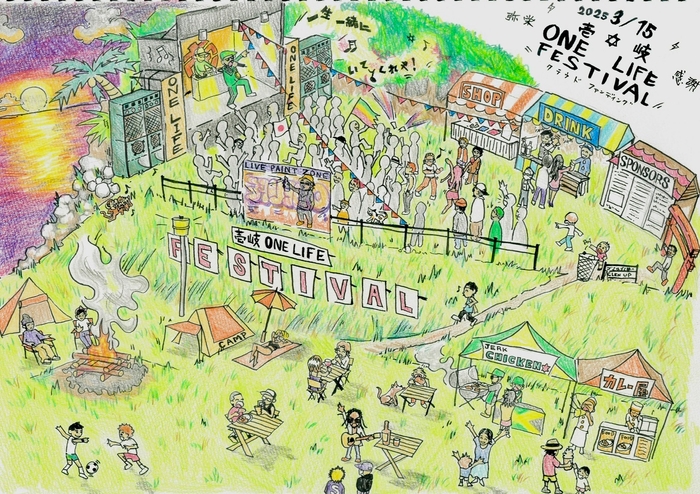 2024年10月5日(土)に壱岐市出会いの村で開催予定だった「ONE LIFE FESTIVAL」は直前の台風予報の影響で船の渡航や海沿いの会場設営が困難と判断。島ならではの理由で事前に中止となりました。しかし「楽しみにしてるよ」と目を輝かせながら声を掛けてくれていた多くの島の人達の笑顔が忘れられなくて...「必ずもう1度挑戦したい!!」という強い想いがありました。そして、この度2025年3月15日(土)に延期開催することが決定いたしました。