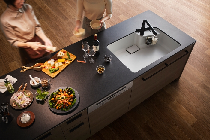 「TENOR(テノール)」は、基材の人造大理石に塗装を施して独特の凹凸感や深みのある表情などを実現したキッチンカウンターです。自社開発・自社製造する人造大理石は1976年に国産で初めてキッチンカウンターに採用し、以来40年以上にわたり進化を続け、耐久性やお手入れ性で高い評価を得ています。「TENOR(テノール)」では、この人造大理石に何層もの塗装を重ねることで本物の鋳鉄・金属・焼き物の質感に迫る意匠を実現し、一般的な人造大理石では表現できなかった濃色やグラデーションも可能になりました。これらの新しい質感の表現が今回の受賞においても高く評価されています。