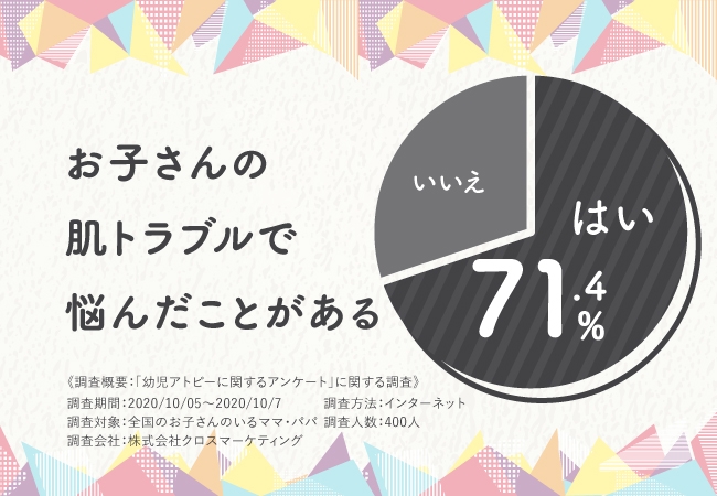 アンケート実施により、お子さんの肌荒れで悩むママ・パパが71.9%いらっしゃるという結果に。