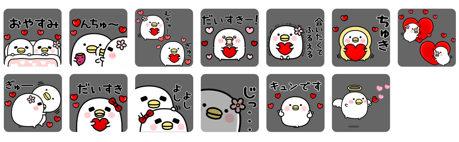 作者mame&coが制作しLINEクリエイターズスタンプから誕生した、ちょっと毒気のある鳥のキャラクター。