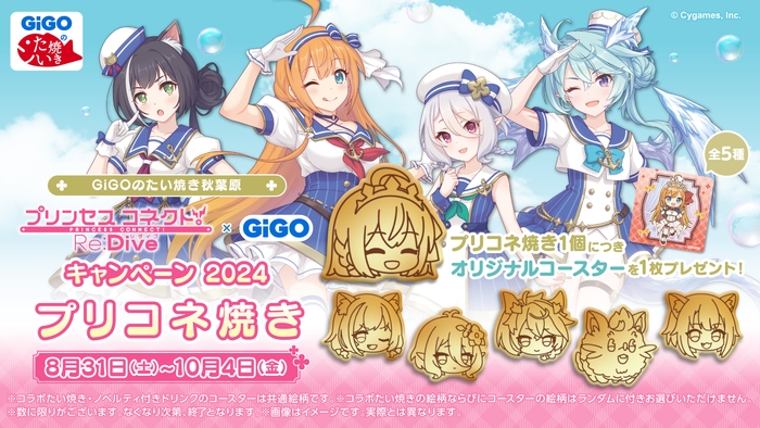 GiGOのたい焼き秋葉原にてオリジナルコースター(全5種)がランダムで1枚付いてくる「プリコネ焼き」を販売いたします。