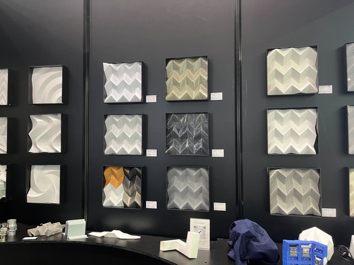 本展示会では、折り工学を用いた加飾技術の設計提案についてや、高機能シート材・フィルム材の平面加工サンプル等を展示いたしました。