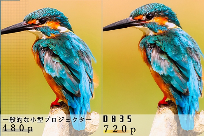 画質は他のエントリーモデルプロジェクターよりも一歩進んだHD画質。ディテールを潰すことなく美しく投影できます。