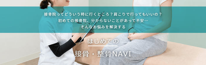 「はじめてNAVI」では、施術院はどんな時に行く場所か、接骨院とマッサージ店の違い、料金や服装など、施術院での施術経験がない方に分かりやすく説明しています。
