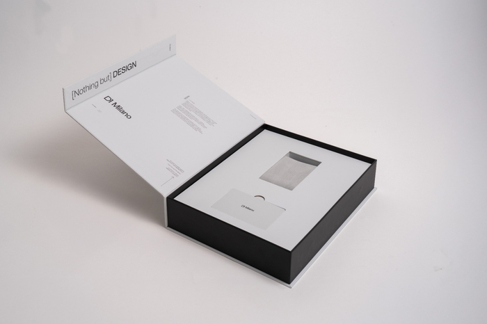 コレクタブルで、ディスプレイしたくなる新パッケージ。中身と同じく、装飾ではなく「本質」を追求するD1 MILANOのデザイン言語を体現しています。