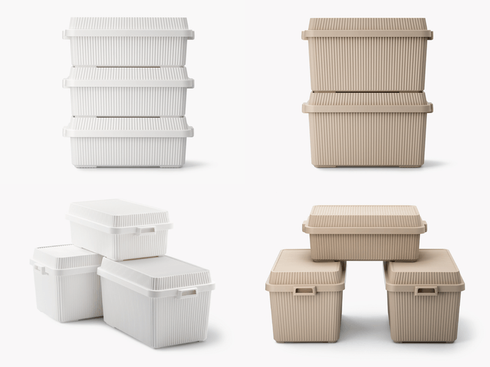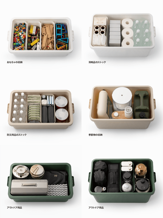 外寸サイズはクローゼットや家具横、押し入れなどの様々なシーンでお使いいただけるサイズに設定されています。また独自のスタッキング構造により縦にも横にも積み重ねることができ、車のトランクやクローゼットなど収納スペースに合わせてアレンジすることもできます。