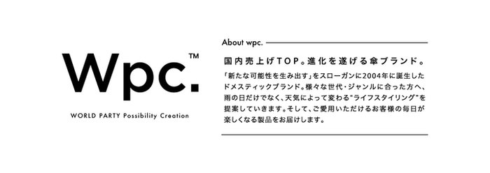 ■ABOUT PLANTICA 花に関係するアート、ファッション、ライフスタイル、カルチャー…それぞれの領域を繋げながら、スペースデザイン、インスタレーションアート、テキスタイルデザイン、プロダクトデザイン、アートディレクションまで手がけるフラワーアート・ユニット。 ■販売サイト 楽天市場 :https://item.rakuten.co.jp/wpc-worldparty/plv/ https://item.rakuten.co.jp/wpc-worldparty/mfv-001/ (ミモザ) ZOZOTOWN :https://zozo.jp/shop/wpc-kiu/goods/37797131/ https://zozo.jp/shop/wpc-kiu/goods/52454201/ (ミモザ) 【会社概要】 会社名 : 株式会社ワールドパーティー 所在地 : [本社]〒558-0014 大阪市住吉区我孫子1-2-9 設立 : 1985年9月 代表 : 代表取締役CEO 中村 俊也 事業内容: レイングッズの企画・製造・卸販売 【ブランド】Wpc. / 株式会社ワールドパーティー:http://www.worldparty.co.jp/ Wpc.™ :https://wpc-worldparty.jp/