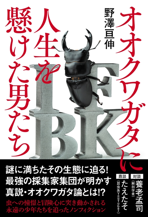 本書では、オオクワガタに魅了された男たちの情熱はもちろん、これまで謎に包まれていたオオクワガタの生態が明かされる。まさに〝真説・オオクワガタ論〟と言えるだろう。加えて、メンバーと解剖学者・養老孟司との対談、昆虫系YouTuber・たえたそとの鼎談も収録した。