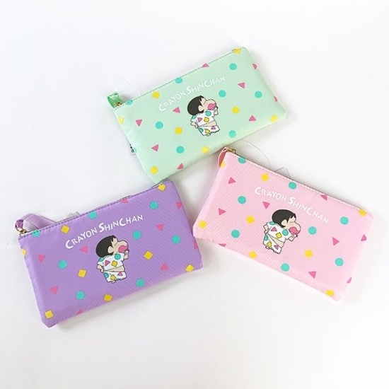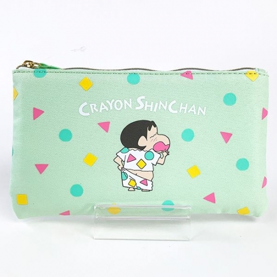 パステルグリーンがキュートなフラットポーチは、パジャマ姿のしんちゃんです♡110×200mmのサイズで、コンパクトに使っていただけます。