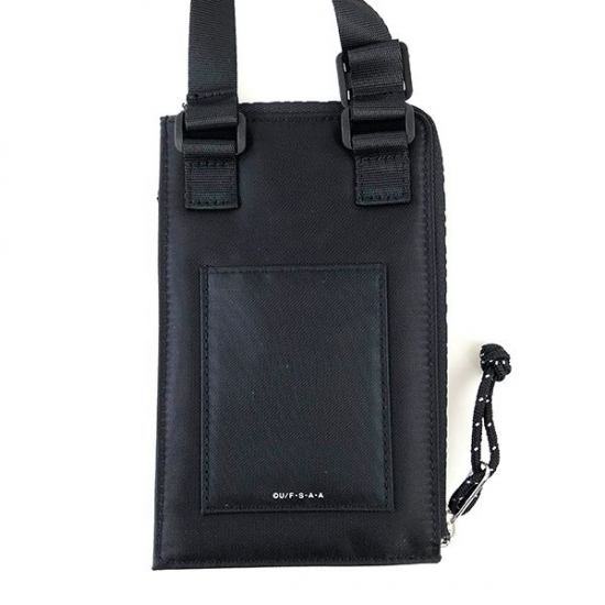 前面にポケットがあり、すぐに取り出したいものを入れておけます。ショルダー部分はアジャスター調節もできるので、体型に合わせてお使いいただけますよ。