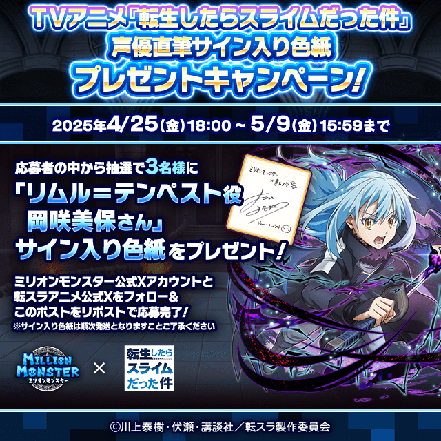 『ミリオンモンスター』×TVアニメ『転生したらスライムだった件』コラボ概要